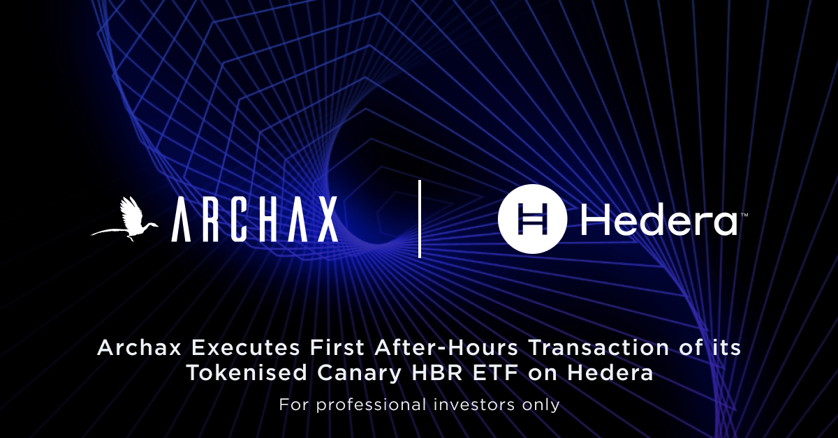 London, December 4, 2025 – Archax, the UK/EU-regulated digital asset platform, today announced the tokenisation and first onchain transaction of the Canary HBR ETF on the Hedera Network. The completed out-of-hours transaction is a landmark achievement in blockchain-based finance: an ETF linked to Hedera's native token, tokenised and transacting on the Hedera Network itself, outside of traditional market hours.